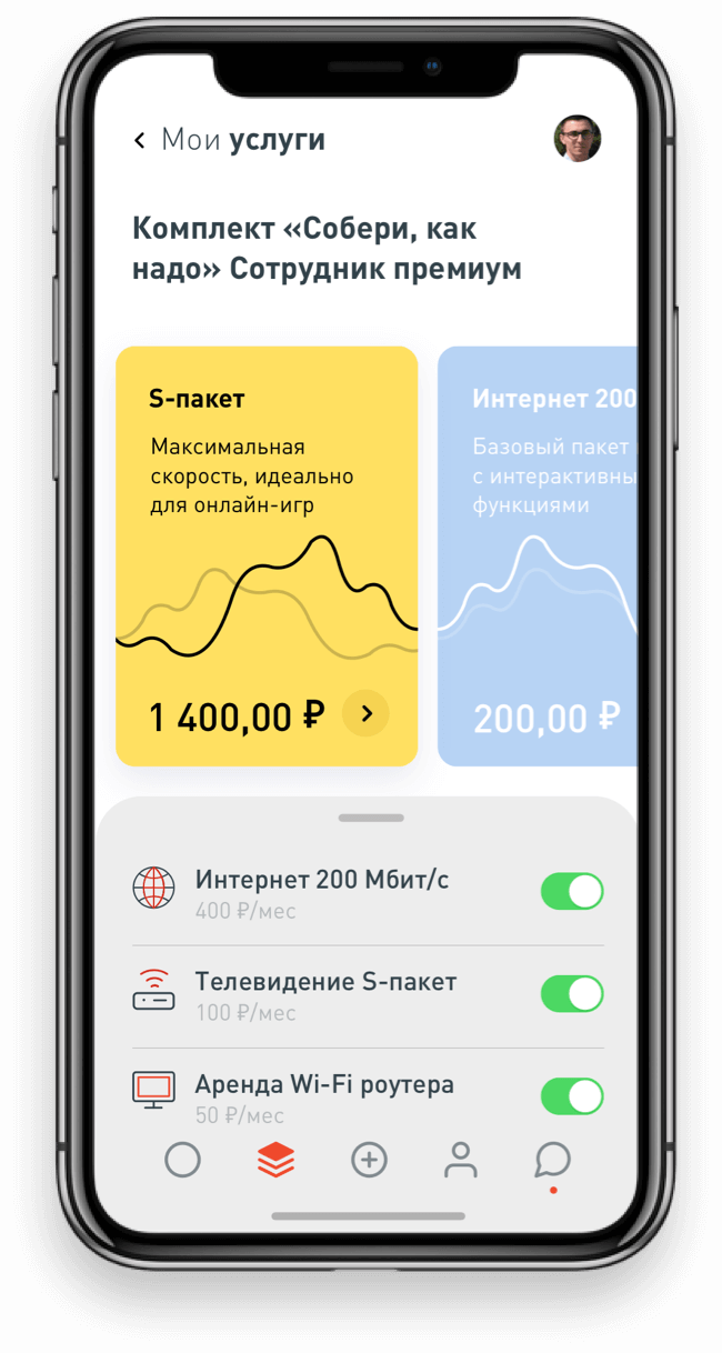Экран выбора услуг