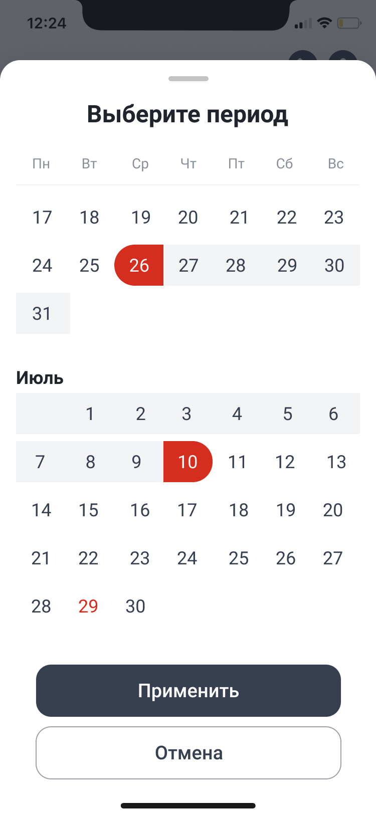 Экран выбора периода