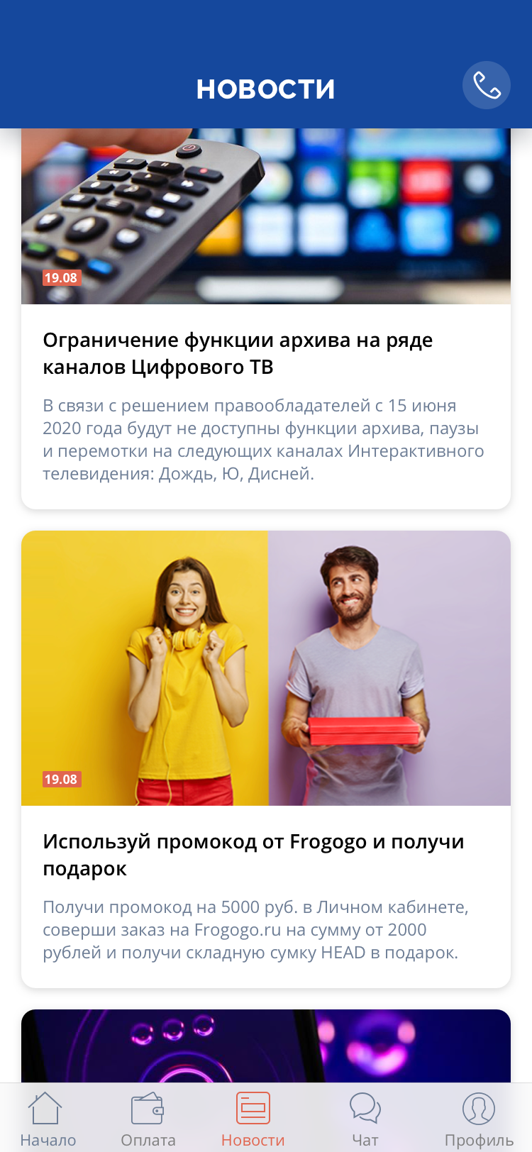 Главный экран лента новостей